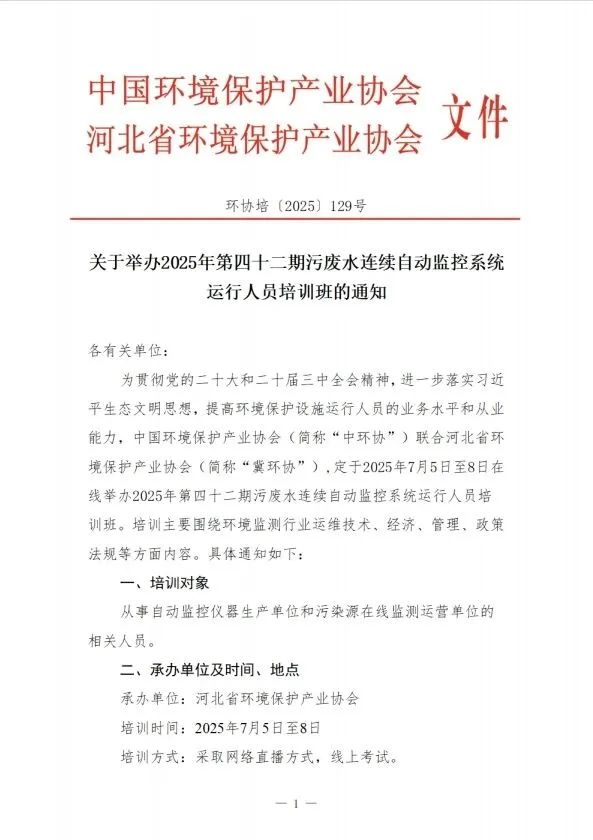• 2025-06-12關(guān)于舉辦2025年第四十二期污廢水連續(xù)自動監(jiān)控系統(tǒng)運行人員培訓(xùn)班的通知